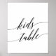 Este elegante cartel de una mesa para niños de caligrafía negra es perfecto para un simple boda. El diseño neutro cuenta con un poster minimalista decorado con una tipografía romántica y caprichosa.