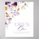 Un elegante cartel "Open Bar" con un delicado diseño floral en tonos suaves violeta y pastel. Perfecto para bodas, recepciones, duchas de novias y eventos especiales, este cartel invita a los huéspedes a disfrutar de las bebidas y celebrar. Una adición encantadora y elegante a cualquier decoración fiesta.