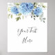 Póster Elegante Rótulo Personalizado Hidrangea Azul Eucal