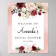 Elegante salpicadura de vino tinto boho floral ducha nupcial letrero de bienvenida 8x10,