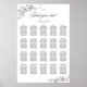 Elegante Caligrafía Gráfica 20 Rosas de mesa Boda de asiento. Rótulo de bienvenida para Boda de mesa 20 Floral blanca y negra vintage