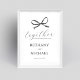 Cartel de poster de bienvenida boda minimalista con un fondo blanco nítido, un elegante arco acuático negro y una plantilla de texto que es fácil de personalizar.