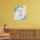 Bienvenidos a la ceremonia de boda o recepción con este impreso poster. El diseño presenta una hermosa acuarela de eucalipto y un verde floral blanco acentuado por un marco ovalado falso purpurina dorado. Todos los estilos de texto, fuente y color se pueden cambiar a personalizar y coordinar con su boda. OPCIONES: La muestra se muestra en un tamaño de 20x24" en papel de valor (Matte); en la página de pedidos están disponibles otros tamaños de impresión estándar y personalizado, calidad y enmarcado de papel, DESCARGA DIGITAL o transferencia del diseño a una placa de espuma, banner, tapiz u otras opciones de producto. CONSEJO SOBRE EL TAMAÑO: Elija el tamaño del Personalizado para los bordes pares cambiando la altura y la anchura proporcionalmente DESPUÉS de hacer clic en el icono DESBLOQUEAR. ASISTENCIA: Para obtener ayuda con la modificación o personalización del diseño, el cambio de color, el cambio de tamaño o la transferencia del diseño a otro producto, póngase en contacto con el diseñador ANTES DE PEDERLO a través de la pestaña del MENSAJE de chat de Zazzle que aparece a continuación o envíe un correo electrónico a makeitaboutyoustore@gmail.com.
