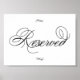 Esta hermosa y atemporal señalización horizontal de mesa reservada le da una elegancia sencilla a cualquier tipo de recepción nupcial, ducha o motivo fiesta. El lujoso diseño de guiones cuenta con una fascinante y romántica caligrafía negra moderna. El bonito tipo de letra con un color de fondo de personalizable facilita la adaptación a cualquier tema. Para otros colores o productos a juego, por favor visite la tienda JustFharryn Zazzle, o contacte con el diseñador, c/o Fharryn@yahoo.com Todos los derechos reservados. #zazzlemade