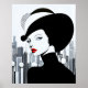 Chica Retro Elegante Alta Sociedad Glamorosa, en el fondo de la ciudad de Nueva York