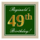 Póster Elegante, verde, falso oro 49 cumpleaños + nombre