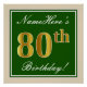 Póster Elegante, verde, falso oro 80 cumpleaños + nombre