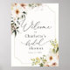 Póster Elegante Verde y Flores Blancas Bienvenida Nupcial