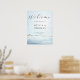 Un sencillo, moderno, elegante y elegante cartel de bienvenida boda para que encuentres una boda en la playa o una recepción en la playa, con una pintura acuarela de un paisaje costero salvaje.