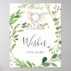 Dé a sus huéspedes una dirección encantadora con nuestros elefantes deseos para el signo de la actividad de los bebés, que incluyen la vegetación acuática eucalipto garland y elegante letra de estilo manuscrito.