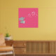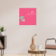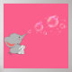 Elephant blowing bobbles while bunny is watching on pink background. Perfect poster for your baby girls room.