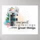 Elephant Cute Baby Saying Floral Poster The graphic is of an elephant peeking over a F with the saying, From small beginnings come great things. Such a loving gift for a baby shower, kids room, or grand kids.