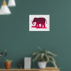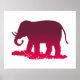 Silhouette of an elephant based on a vintage 1800's advertisement in a gradient from pink to dark raspberry red.