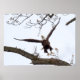 Un águila calva extiende sus enormes alas y se estira para despegar de una rama de árbol.