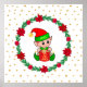 Navidades cortos elfo, corona de pino decorada con poinsettias y bolas de Navidad rodeadas de estrellas doradas sobre un Poster de fondo blanco. El texto de la caja de regalo se puede personalizar
