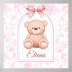 Eliana es la estrella de este adorable diseño de vivero de osito de peluche rosa personalizado, que cuenta con un suave oso de peluche, un delicado fondo floral y un dulce lazo rosa. Esta encantadora obra de arte se puede personalizar con el nombre de tu pequeño, lo que la convierte en una hermosa opción para la decoración del vivero, regalos para baby shower o recuerdos.