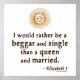 "Prefiero ser un mendigo y soltero que una reina y casarme". La reina Isabel dijo esto al Embajador del Duque de Wurtemberg en 1564.