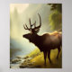 Beber de alce majestuoso en un flujo forestal - una pintura digital creada usando software de generación de IA.