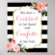 Póster Ella tenía cóctel en su mano confeti en su cabello