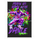 El ilustracion colorido de un hombre bailando estilo hip hop. Ilustracion hecho con goteo estilo graffiti. Cita "ELOGIAR SU NOMBRE CON BAILE" tomada de "PSALM 149:3".
