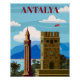 Poster emblemático de Antalya, Torre del Reloj Militar, resort de Turquía. Tarjeta postal de viaje turística de época, cartel, ilustracion