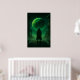 A mysterious hooded figure stands beneath a glowing green planet, creating a surreal and atmospheric fantasy scene. Perfect for lovers of moody, dramatic, and otherworldly artwork.