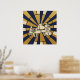A stunning mid-century inspired portrait of a jazz singer in a glamorous emerald green gown. Featuring a bold sunburst background and vintage microphone, this elegant music poster is a perfect focal point for your lounge, home bar, or creative studio.