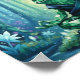 This whimsical poster features a meditating crystal frog in a luminous enchanted forest, serene zen pose with geometric facets, soft light, sparkling mist and tranquil foliage.