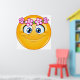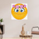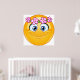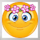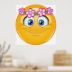 Un emoticono amarillo con una corona floral alrededor de la cabeza. Este diseño parece realmente efectivo en este Poster
