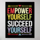 Este poderoso diseño de tipografía presenta la cita motivacional "Empoderarse, triunfar a sí mismo" en un estilo audaz y colorido. Perfecto para los individuos que aman la automejora, la motivación del éxito y el pensamiento positivo. Excelente para emprendedores, estudiantes y cualquiera que se esfuerce por el crecimiento personal.
