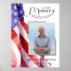 Un poster funerario presenta una acuarela Bandera de los Estados Unidos con la foto, nombre, fecha de nacimiento y muerte de su ser querido y "En memoria amorosa y para siempre en nuestros corazones" en la parte superior. COINCIDIENDO elementos de nuestra colección.