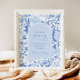 Este diseño inspirado en chinoiserie presenta elegantes flores botánicas y follaje en azul delft y blanco. Personalice la invitación con sus datos y si desea reorganizar aún más el estilo y la ubicación del texto, presione el botón "Haga clic para personalizar aún más".
