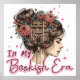 Encantador ilustracion con una mujer con el pelo en un moño y flores en el pelo. Dentro de su cabeza vemos una gran biblioteca llena de libros. Hay una mujer subiendo una escalera para llegar a los libros. El colorido texto dice: "En mi era de los libros". Este diseño está disponible en una amplia variedad de productos.