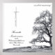 Este cartel conmemorativo tiene un diseño oscuro moderno y elegante con un borde negro alrededor de la parte frontal. En silencio luto - árbol en un prado.