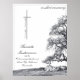 Este cartel conmemorativo tiene un diseño oscuro moderno y elegante con un borde negro alrededor de la parte frontal. En silencio luto - árbol en un prado.