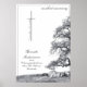 Este cartel conmemorativo tiene un diseño oscuro moderno y elegante con un borde negro alrededor de la parte frontal. En silencio luto - árbol en un prado.