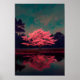 Póster Encantador árbol rosa junto al lago reflexivo
