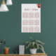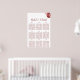Facilita los asientos de la recepción de bodas con esta bonita tabla de asientos. El diseño, que se muestra en un fondo blanco, presenta una hermosa pantalla de flores borgoñas en la gráfica superior. A esto le sigue el nombre de la pareja elegantemente escrito con letras cursivas burdeos. Debajo hay plantillas para insertar nombres de invitados en las tablas asignadas. Compra toda la colección para los elementos coincidentes.