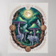 Póster Enchanted Moonlit Wolves and Psychedelic Mushrooms