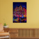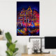 Una pintura abstracta de los edificios en una luz nítida vívida y un rastro de vehículos livianos que pasan por ahí. Este poster hará que su habitación sea más colorida.