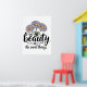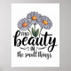Diseño de flores margaritas pintadas de color agua con "Encuentra belleza en las cosas pequeñas" esta cita inspiradora.
