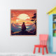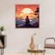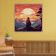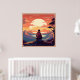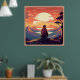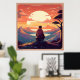 "Esta obra de arte de estilo retro captura un momento sereno de contemplación como una mirada de carácter al atardecer, junto con la inspiradora cita: 'La felicidad se puede encontrar, incluso en los tiempos más oscuros, si uno solo recuerda encender la luz'. Los colores cálidos y el diseño nostálgico de los personalizados evocan un sentido de esperanza y reflexión, perfecto para animar a los posters o para hacer una mercadería personalizada".