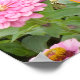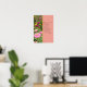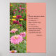 Este poster está dividido en dos partes: a la izquierda hay una foto de un precioso jardín florido en magentas, amarillas, rojas y rosadas. A la derecha hay una cita en texto negro sobre un fondo rosa sólido. La primera letra es más grande con un relleno rojo, con un tipo de letra elegante. Una línea dorada divide las dos secciones. Cita: "Encuentra en cada día la oportunidad de leer un poema, o escribir uno, tocar una canción favorita, o cantar una; hacer algo que relaja el cuerpo, estira la mente y satisface el alma". Productos infinitos presentan el trabajo de la exitosa escritora inspiradora Paula Finn. Si no encuentra exactamente lo que quiere... ¡hágannos saber!