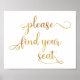 Póster "Encuentra tu asiento" Rótulo Boda blanco dorado