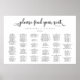 Este sencillo cuadro alfabético en blanco y negro es perfecto para un boda elegante y clásico. Puede cambiar el color de fondo. Simplemente haga clic en el enlace personalizar adicional, que se muestra bajo el área de personalización de texto a la derecha, y elija el fondo de color personalizado. Este signo horizontal se puede utilizar para organizar los invitados alfabéticamente o por número de tabla cambiando los encabezados. Este poster boda tiene capacidad para 100 personas. Haga espacio para más (o menos) invitados haciendo clic en el botón "personalizar" y disminuya o aumente el tamaño del tipo de letra.