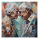 Esta pieza geométrica representa a una pareja mayor en un momento tierno, con triángulos coloridos en tonos suaves y vibrantes. Las formas entrelazadas simbolizan una unión duradera, mientras que los colores mezclados reflejan la profundidad de sus emociones y la belleza de una vida compartida.