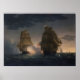 Endymion del HMS Yaws para asaltar al presidente de EEUU, de Thomas Buttersworth La batalla naval entre HMS Endymion y el presidente de EEUU se llevó a cabo el 15 de enero de 1815, durante la Guerra de 1812 entre Estados Unidos y Gran Bretaña. El encuentro tuvo lugar frente a las costas de Long Island y fue un enfrentamiento significativo entre la Marina Real Británica y los Estados Unidos. HMS Endymion, una fragata de 40 armas de quinta clase, se enfrentó con el Presidente de los Estados Unidos, una fragata de 44 armas, en una feroz y larga batalla que duró varias horas. El encuentro fue parte de una serie de conflictos navales entre las dos naciones durante la Guerra de 1812. A pesar de la disparidad en la potencia de fuego y el intento del presidente de correr más rápido que el barco británico, el presidente de los Estados Unidos fue eventualmente dominado por el HMS Endymion. La batalla fue intensa, resultando en muchas bajas en ambos lados. A pesar de infligir daños sustanciales a la nave británica, el presidente de los Estados Unidos finalmente se entregó a la Endymion debido a la gravedad de los daños que sufrió. Posteriormente, el Presidente de los Estados Unidos fue capturado por los británicos y puesto a su servicio, mientras que el Endymion sufrió graves daños en la batalla, lo que después requirió reparaciones importantes. La batalla entre HMS Endymion y el presidente de EEUU es uno de los compromisos navales significativos de la guerra de 1812 y destacó la proeza de ambas fuerzas navales en tiempos de conflicto entre Estados Unidos y Gran Bretaña.