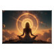 Una llamativa silueta de una persona meditando contra un telón de fondo cósmico lleno de planetas y un sol brillante. Esta obra de arte encarna temas de paz, espiritualidad y fortaleza interior, lo que la convierte en una pieza inspiradora para quienes están en un viaje de autodescubrimiento.