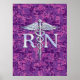 Póster Enfermera inscrita RN Silver Caduceus en Camo Rosa