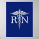 Póster Enfermera inscrita RN Silver Caduceus Navy Blue de